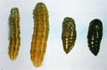 Bài 61 SÂU CẮN GIÉ(Tên khoa học: Mythimna separata Walker) Thuộc họ: Noctuidae Bộ: Lepidoptera Đặc điểm hình thái: - Trứng sâu cắn gié hơi tròn, không có lông tơ phủ bên ngoài, bề mặt trứng có những vân khía hình mạng lưới, mắt vân có hình đa giác không đầu. Trứng xếp thành hàng hoặc chồng lên nhau thành ổ. Trứng mới đẻ có màu vàng sáng sau chuyển màu vàng đậm, khi sắp nở có màu tím than. - Sâu non (ấu trùng) có màu nâu vàng nhạt, phía lưng có 4 vệt màu đen xám chạy dọc, đầu có màu nâu đậm. - Nhộng: có màu nâu đỏ, từ đốt bụng thứ 5-7 về phía mép trước có đường sống nổi ngang màu nâu đen, trên đường đó có một dãy chấm lõm, cuối bụng có một đôi gai thô và hai đôi gan nhỏ. - Con trưởng thành: là loài bướm có thân dài màu nâu tro nhạt hoặc nâu vàng nhạt. Cánh trước có màu giống thân, có nhiều chấm đen nhỏ. Góc dưới buồng giữa cánh có chấm trắng rõ, hai bên chấm trắng có hai chấm đen. Có một đường vân đen chạy xiên từ đỉnh cánh tới mép sau của cánh. Mép ngoài cánh có 7 điểm đen. Phía trong của cánh sau có màu nâu tro nhạt, phía ngoài màu nâu. Đặc điểm sinh học, sinh thái và gây hại: Vòng đời của sâu cắn gié từ 34-71 ngày có: + Thời gian trứng: 3-11 ngày. + Thời gian sâu non: 18-41 ngày. + Thời gian nhộng: 7-22 ngày. + Thời gian trưởng thành: 6-11 ngày. Con trưởng thành đẻ trứng thành từng ổ và được che phủ bằng một chất keo, chúng đẻ chứng nhiều trên lá cuốn hơn là lá thẳng, trên lá chưa mốc và ở các lá dưới gốc. Trung bình một con cái đẻ khoảng trên 100 quả trứng, số trứng đẻ phụ thuộc vào điều kiện dinh dưỡng và nhiệt độ, ẩm độ và tỉ lệ nở của trứng cũng rất cao. Sâu non mới nở sống tập trung, ẩn nấp trong lá nõn hoặc mặt dưới lá hay bẹ lá. Lượng ăn của sâu tuổi 4-6 chiếm 90% tổng lượng ăn của cả đời sâu non. Sâu có thể di truyển thành đàn, sâu non tuổi càng lớn càng sợ ánh sáng, loài sâu này còn có tập tính giả chết. Sâu non đẫy sức di chuyển từ trên cây xuống đất để hoá nhộng, nằm nằm dưới đất ở độ sâu 5-10 cm dưới gốc cây lúa, cũng có thể sâu non di chuyển lên bờ ruộng để hoá nhộng. Sâu cắn gié là loài ưa điều kiện mát mẻ, hơi lạnh và độ ẩm cao. Nhiệt độ cao, khô hạn, điều kiện thức ăn... ảnh hưởng đến khả năng đẻ trứng của con trưởng thành. Sâu thường phát sinh nhiều trên những cánh đồng thấp, cây cỏ rậm rạp, khó tưới tiêu nước, có độ ẩm cao. Sâu xuất hiện tập trung nên còn gọi là sâu đàn. Sâu non tuổi 1 phá hại để lại những vệt trắng dài nham nhở; sâu tuổi 2-3 gặm khuyết lá; sâu tuổi 4-6 ăn từ mép, bìa lá vào chỉ chừa gân lá và thân; chúng còn cắn đứt ngang cuống bông và cuống gié lúa. Con trưởng thành của sâu cắn gié hoạt động vào ban đem, ban ngày thường ẩn dưới gốc lúa hay trong đám cỏ. Bướm ưa thích mùi vị chua, ngọt và nó có thể bay xa hàng chục cây số. Phòng trừ: ● Làm đất thật kỹ, dọn sạch cỏ dại trong ruộng lúa và cả trên bờ. ● Khi lúa chín không nên để ruộng khô nước sớm. Khi mật độ sâu chưa đủ ngưỡng phun thuốc, áp dụng cách bẫy bằng những bó rạ khô tẩm dấm mật và thuốc trừ sâu. ● Từ tháng 11-12 nếu có điều kiền có thể cuốc sạch cỏ hay phun thuốc trừ cỏ để diệt trứng, sâu non và nhộng. Bảo vệ ong ký sinh và các loài ký sinh thiên địch khác. Trường hợp cần phun thuốc thì đợi đến khi sâu tuổi 4 đạt cao nhất thì phun thuốc vì lúc này ong ký sinh đã rời khỏi ký chủ. |