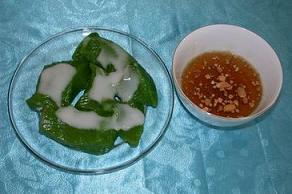 trơn tuột như miếng thạch vừa dẻo, vừa dòn, khi nhai thấy thơm ngan ngát mùi lá