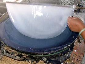 bánh ướt. Bột gạo, bột năng, bột khoai mì được hòa tan với nước sao cho khi