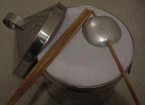 vãi. Màng vải này được căng thẳng trên một nồi hơi. Hơi nước có vai trò cấp