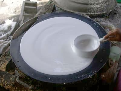 nồi, nấu khoảng 2 phút rồi dùng thanh tre mỏng lấy lớp bánh lên. Ở