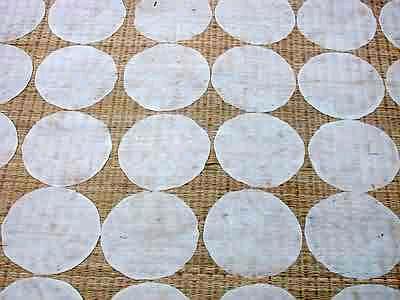 Phơi lần 1: Bánh cần đem phơi sau khi định hình, mục đích cố định hình dạng bánh và chuẩn bị cho khâu nhúng nước đường, thời gian phơi khoảng 3 đến 4 giờ