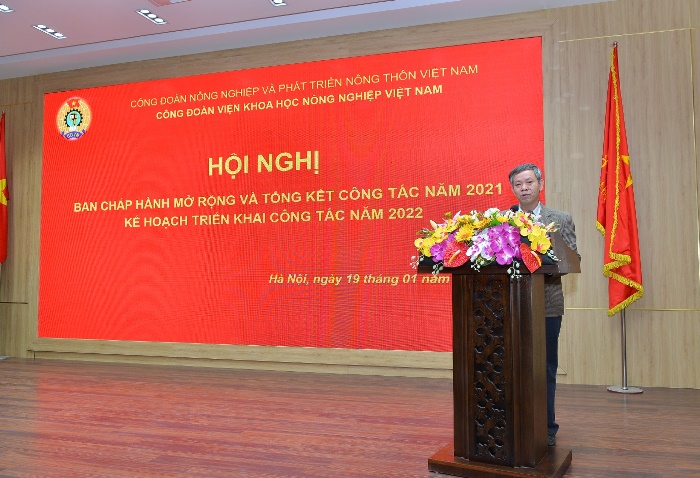 Phát biểu chỉ đạo hội nghị, GS.TS Phạm Văn Toản, Phó Bí thư Đảng ủy, Phó Giám đốc Viện Khoa học Nông nghiệp Việt Nam ghi nhận những thành tích hoạt động công đoàn trong năm 2021. Mặc dù trước tình hình diễn biến phức tạp của dịch bệnh Covid-19, nhưng Ban Chấp hành công đoàn vẫn duy trì tốt các phong trào thi đua và hoạt động công đoàn kịp thời thích ứng với điều kiện chung của hệ thống chính trị. Phát huy những thành tích đã đạt được, năm 2022, Ban Chấp hành Công đoàn phải tích cực, thường xuyên hơn nữa trong việc bám sát nhiệm vụ chuyên môn để triển khai có hiệu quả các phong trào thi đua yêu nước trong công nhân viên chức lao động và chuẩn bị cho công tác tổ chức Đại hội công đoàn các cấp.